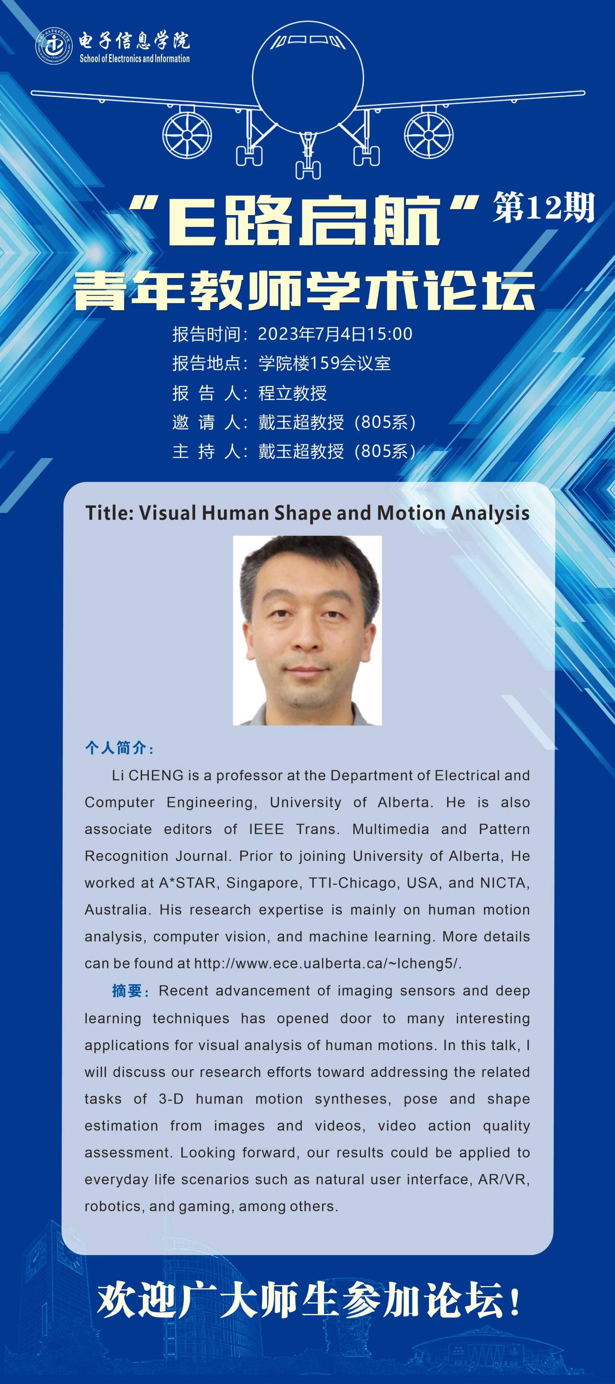 “E路启航”第12期青年教师学术论坛 Visual Human Shape and Motion Analysis