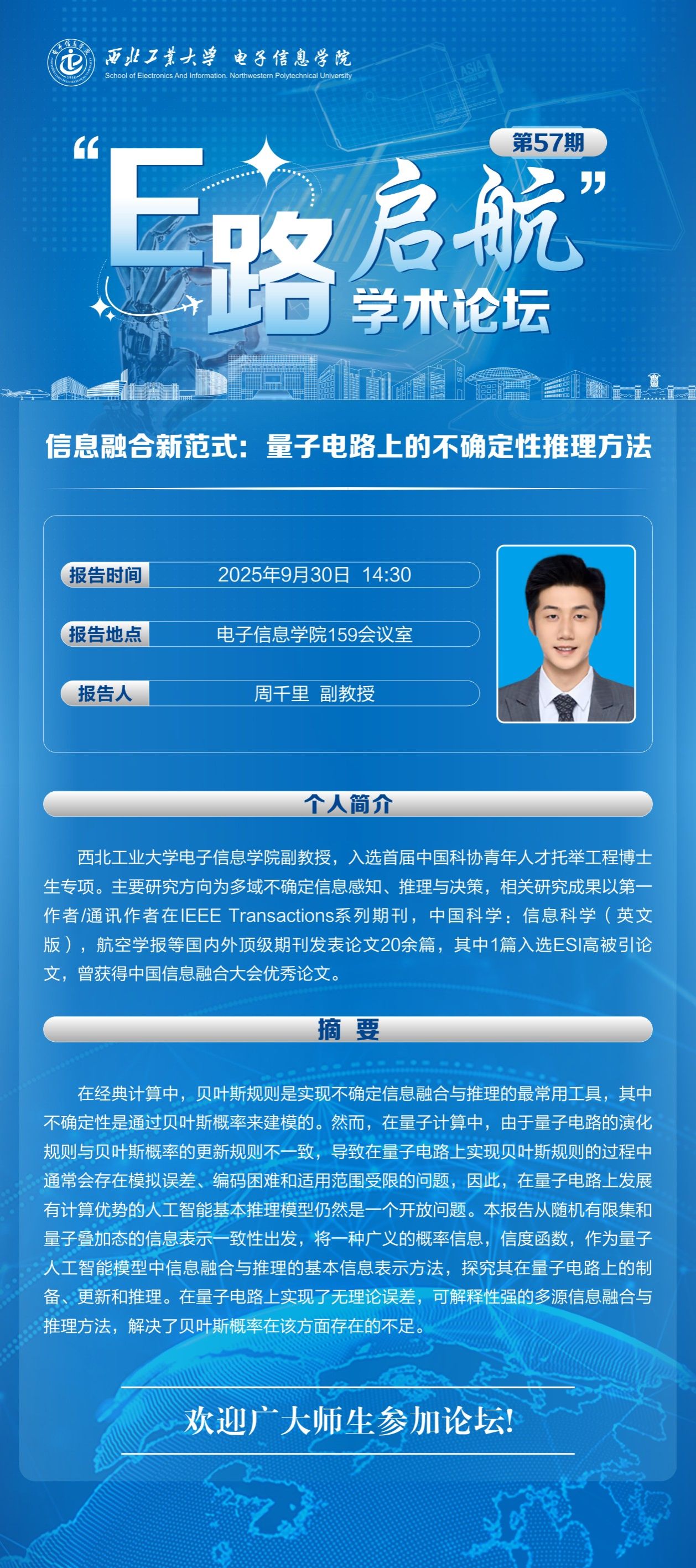 “E路启航”学术论坛第57期——信息融合新范式:量子电路上的不确定性推理方法