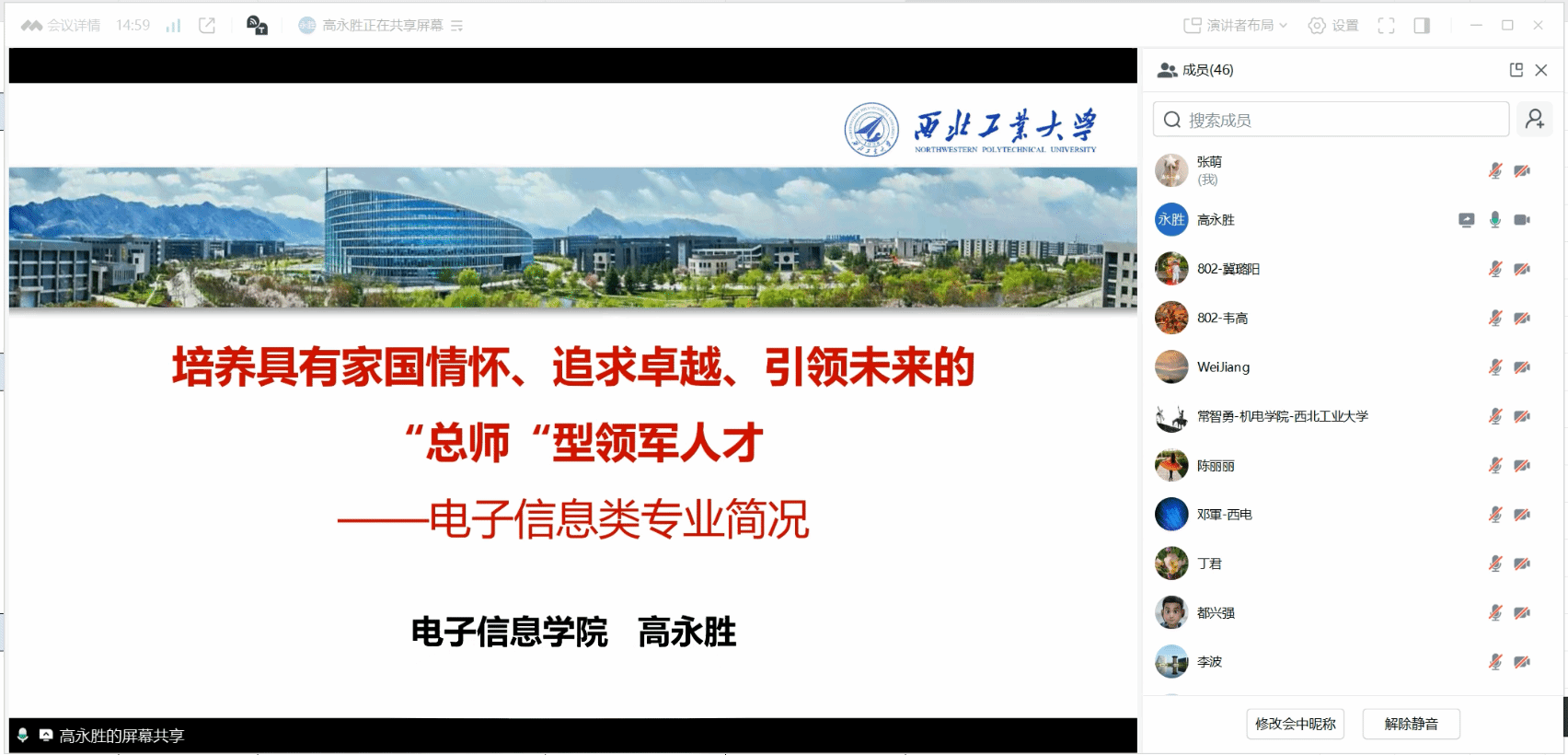 在评审会议前,高永胜作题为《培养具有家国情怀、追求卓越、引领未来的“总师”型领军人才》的汇报,从学院基本情况、电子信息类专业课程体系等方面,对电子信息类专业进行介绍。