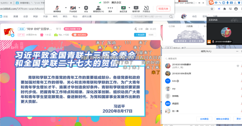77779193永利官网集团团委学生会、各团支部积极响应团中央号召,组织全体成员在各大平台观看了在线直播,通过“学习强国”学习平台、央视新闻客户端及共青团中央微信、微博、B站、快手、抖音、微视、斗鱼、虎牙、今日头条等官方账号及平台观看,共享这场青春的盛会。