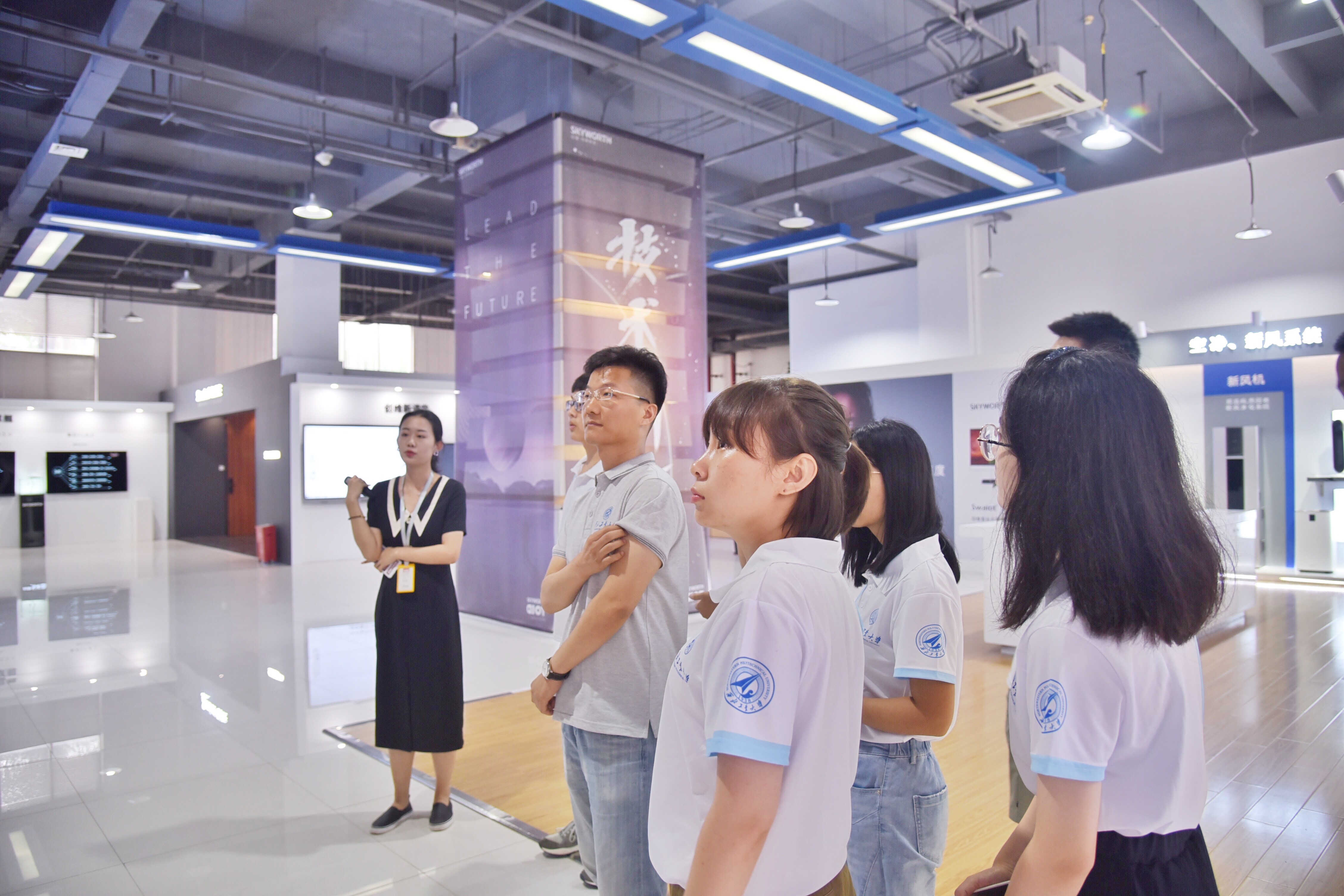 座谈会后,同学们来到了创维产品体验中心,近距离地感受了创维研发的变色龙AI画质芯片所带来的饱和度对比度大大提升的电视效果、屏风电视带来的古典美、大屏AIoT带来的简单便捷以及一系列小巧精致生活用品所带来的满满科技感。高效精致又安全的需求使得科技一点一滴地渗透到了生活的方方面面。