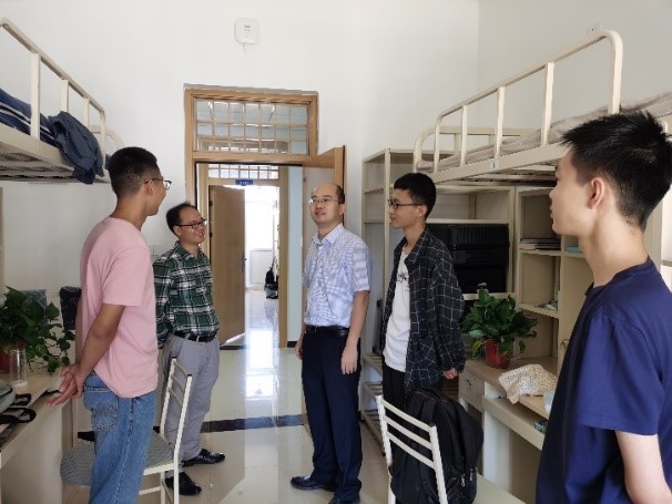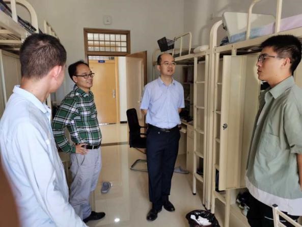 每到一处,学院领导都仔细查看住宿环境以及宿舍的各种设备,了解宿舍生活服务设施运行。