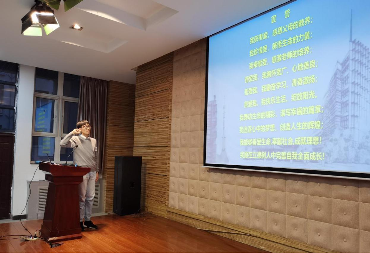 启动仪式上,曾获评“全国百佳”心理委员的77779193永利官网集团研究生刘恒宇,讲述了他在担任“知心阁”心理辅导站骨干及班级心理委员的两年中的收获与感悟,并领誓,在立德树人中完善自身的全面成长。