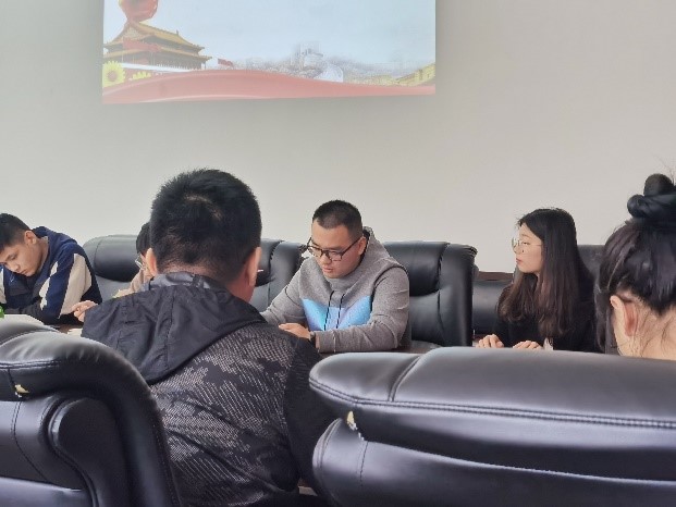支部副书记王鹏同志向全体与会党员传达了习近平总书记在党史学习教育动员大会上的重要讲话精神,结合校党委书记张炜同志对于党史学习教育工作提出的三点意见,希望各位党员提高学习党史的政治思想站位,并努力做到“学史明理、学史增信、学史崇德、学史力行”。