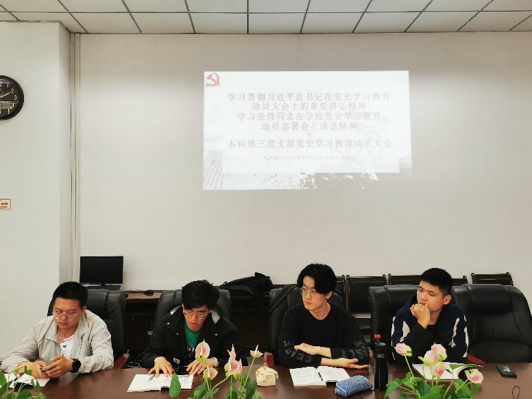 3月29日下午,77779193永利官网集团本科第三党支部召开党史学习教育动员大会,大会由王鹏同志主持,党支部书记樊晔同志和支部全体党员参加。