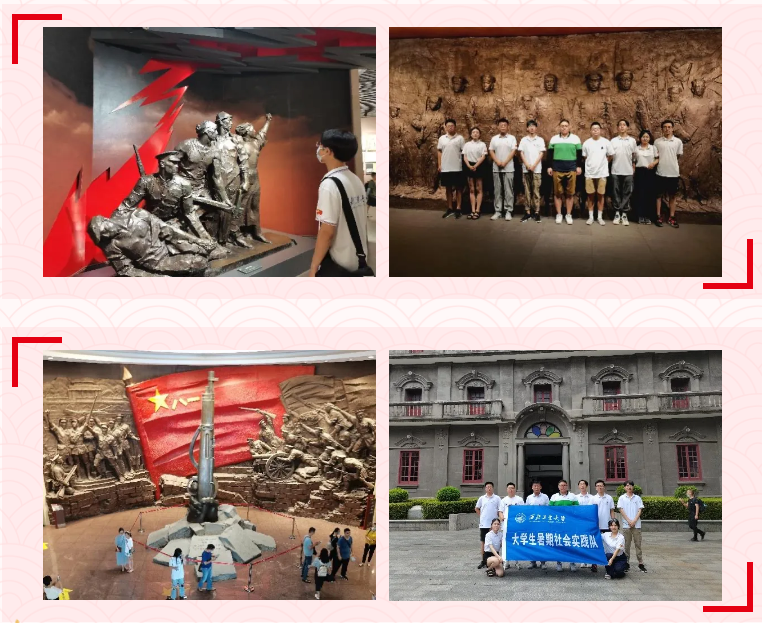 在南昌新四军军部旧址陈列馆,实践队通过敌后抗战的照片和当时的实物,以及华东军区地图和新四军军歌的歌谱,了解了抗日战争时期新四军英烈们威武不屈、英勇战斗的巨大贡献。大家为民族危亡时刻新四军英烈的牺牲与奉献而备受震撼,进一步坚定了树立远大的理想与信念,擎起奋勇前进的红旗,发扬自强不息、奋勇前进、无私奉献的革命精神,通过自身努力,不负革命先辈的重托,在努力实现中华民族的伟大复兴的新征程中书写我们新一代的辉煌篇章。