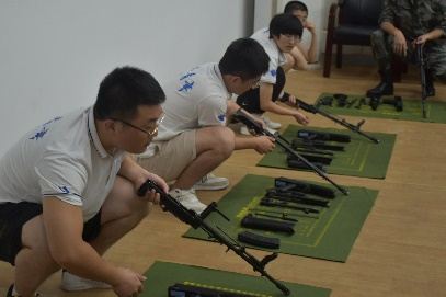 枪,军人的第二生命。上午9时,实践队员在教官带领下步入阶梯教室就国产95-1步枪射击原理、零部件组成和枪械保养进行学习,并完成步枪拆卸、组装的考核。在步枪拆装讲解示范过程中,实践队员以严肃认真的态度对待每一个细节,仔细观察,踊跃提问。在步枪拆卸、组装的考核过程中,实践队员均取得优异成绩,其中一名女队员在枪械拆装考核拔得头筹,巾帼不让须眉。实践队员在本次学习实践中收获颇多,不仅在实际操作方面实现了从零到有的飞跃,更在思想上对军人荣誉有了更深层次的认知:枪,代表着军人的荣誉,凝聚着军人的感情,在精神层面上与军人高度融合。