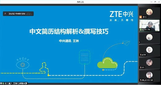 学院邀请中兴通讯HR王琳老师,结合自身实际经验,开展了一次主题为“中文简历结构解析与撰写技巧”的线上分享交流活动。王老师首先从制作简历的常见问题入手,提醒同学们在制作简历的过程中要避免出现缺乏针对性、职业路径混乱等问题,然后剖析了典型的简历结构,指出一份完整的求职简历应该至少包括基本信息、求职意向、教育背景、项目实践经历、专业技能和荣誉成果等部分,并带大家了解在线简历的投递渠道,如前程无忧网、智联招聘网、中华英才网等。
