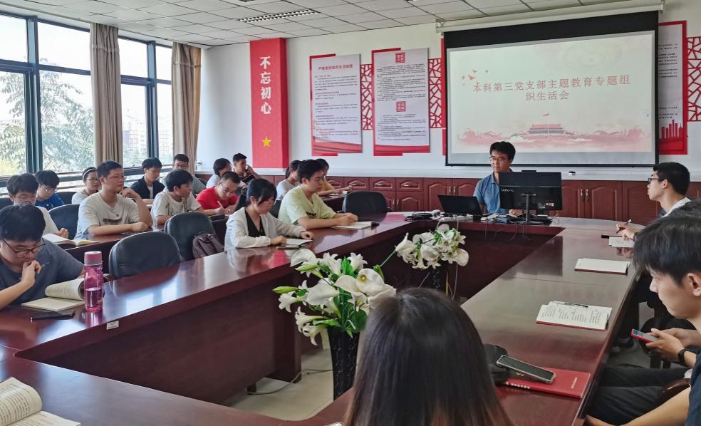 首先,支部书记许茜代表支部委员会汇报了本科第三党支部关于开展学习贯彻习近平新时代中国特色社会主义思想主题教育的有关情况,并结合支部实际情况,总结了支部工作的成果,并指出了支部存在的不足,为支部今后的建设工作提供了宝贵的指导意见。陈学润通报支委会查摆问题。