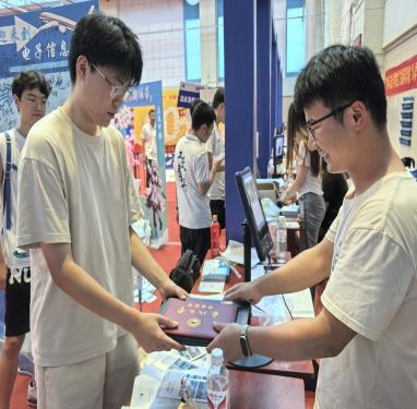 在外场,迎新的热情更是如骄阳般炙热。志愿者们化身为新生的“活地图”,耐心解答各种疑惑,细致讲解报到流程,指引报到路线。每一个细节都展现了他们的用心与热情。而学院精心准备的迎新大礼包更是惊喜连连——从实用的学习用品到充满学院特色的小礼品,应有尽有,每一份都是对新生的欢迎与祝福。