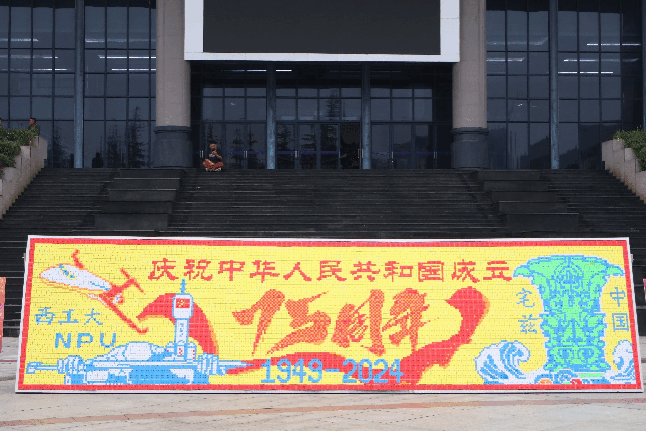 参与者根据设计图纸共使用了72组、3600个魔方,搭建了一面带有西工大元素的巨幅魔方墙,以庆祝中华人民共和国成立75周年。活动结束后,大家纷纷与魔方墙进行合影留念。