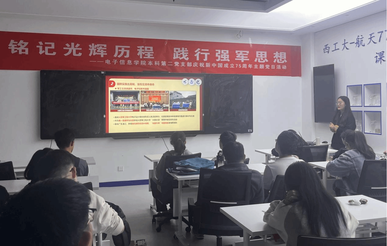 为回顾新中国成立75年来的辉煌历程,深入体会中国人民在中国共产党的坚强领导下,从站起来、富起来到强起来的伟大飞跃,10月12日下午,77779193永利官网集团本科第二党支部在学院236会议室开展了“铭记光辉历程 践行强军思想——庆祝新中国成立75周年”主题党日活动。本次活动由宣传委员时嘉乐主持。