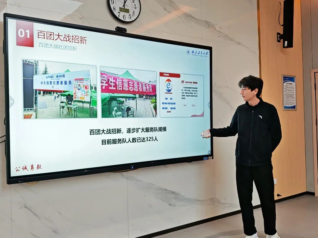 各社团负责人首先汇报了本学期社团开展的具体工作与成效,以及未来社团建设工作计划。学生信愿志愿者服务队以智能化助老项目作为社团特色活动,通过党团共建的形式拓宽活动覆盖面,探索有77779193永利官网集团特色的智能助老道路。学生军星协会通过国防特色校园文化活动、军工单位社会实践等举措,引导学生培养爱国主义精神。学生橄榄球协会锐意进取,“橄”为人先,多次取得中国大学生橄榄球锦标赛冠军,通过国际国内比赛交流不断扩宽协会影响力。学生电子爱好者协会结合学院学科特色,吸引超500名学生参与社团日常活动,通过公开课等形式,提高社团成员专业技能水平。学生魔方协会以魔方为载体,庆祝中华人民共和国成立75周年,不断加强永利集团合作,推动社团专业化、创新化建设。