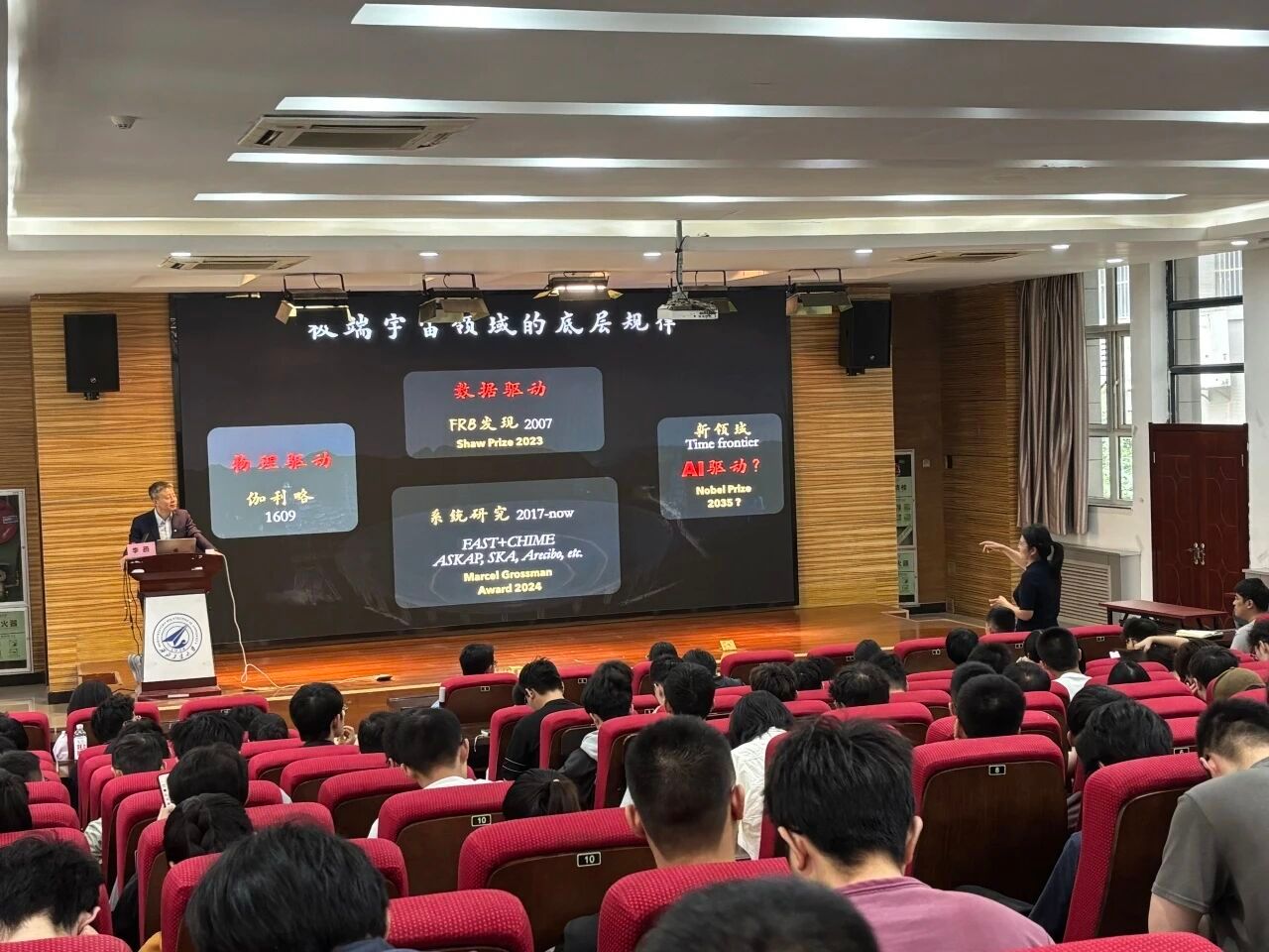 5月27日,由党委学生工作部主办、77779193永利官网集团承办的“翱翔灵犀学术殿堂”第881期在长安校区八九院间学术报告厅成功举办。清华大学讲席教授、“中国天眼”FAST原首席科学家李菂教授,应李长侑副教授邀请,带来了一场题为《时间前沿:探索极端宇宙的底层规律》的精彩学术报告。本次活动由77779193永利官网集团党委副书记高敏主持,全校100余名师生共同参与,一起感受深邃的宇宙奥秘。