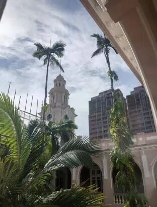 在充实的学术交流之余,同学们漫步香港大学校园,沉浸式感受这所百年学府的历史底蕴与人文气息。香港大学主校区宛如一部立体的城市编年史:踏入薄扶林道主入口,文艺复兴风格的本部大楼(1912年)以红砖穹顶与科林斯柱廊昭示其开创时期的学术建设,孙中山曾演讲的陆佑堂木制讲台至今留存着历史余温。向山腰延伸的校园呈现出惊人的垂直密度——学生们搭乘半山电梯穿梭于24小时开放的主图书馆(香港最大古籍库藏地)与嘉道理生物科学大楼(亚洲首个P4实验室所在地)之间,在悬挑观景台眺望维港集装箱轮与金融大厦的天际线时,深刻体会这座山城校园如何以“空间折叠术”化解土地困局。更令人震撼的是建筑的文化对话:哥特式尖拱的大学堂(前法国外方传道会大楼)内,学生们触摸着百年柚木螺旋楼梯的包浆拾级而上;毗邻的邵逸夫创意媒体中心却以钛合金曲面外墙折射数码光影,这种历史遗产与赛博美学的共生,成为香港文化韧性的微观标本。