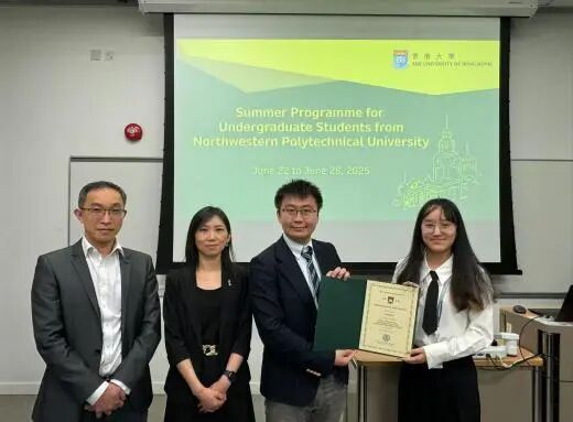 赴港访学之旅在最后一天的成果汇报中进入高潮。各小组围绕连日来的讲座内容,结合自身专业知识,依次登台进行研究成果展示,成员们分工明确,有人解析技术瓶颈,有人阐述解决方案,默契的配合展现出团队协作的力量。随着最后一组汇报结束,会议室里响起了持久的掌声。随后,刘元伟教授为40名同学颁发结业证书,为77779193永利官网集团暑期赴香港大学访学活动画上圆满句号。
