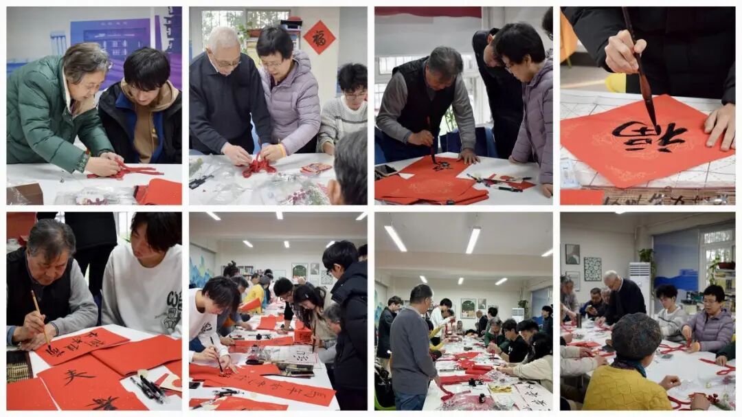 活动现场暖意氤氲、年味盎然,三大板块逐步推进、各有韵味,大红宣纸、毛笔、墨汁、红绳、剪刀等物料整齐陈列,处处洋溢着“红韵满堂、福意盎然”的节日气息。活动还特别邀请了书法大家党进宝老师来为师生们进行题为“如何写一手好的毛笔字”思政课,让师生们在学习执笔姿势、运笔技巧以及结构布局的同时体悟中华传统文化的魅力。