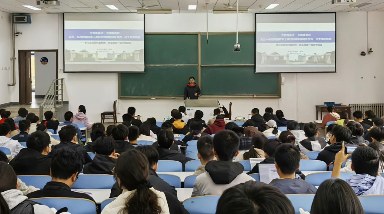11月7日中午,为深入学习贯彻党的二十届三中全会精神、深刻领悟习近平总书记关于教育的重要论述和全国教育大会精神,进一步贯彻落实学校第十四次党代会精神,系统谋划学校、学院“双一流”建设举措,77779193永利官网集团党委书记侯俊在教西D101作《为党育英才 为国铸重剑 走出一条西部国防军工高校创建中国特色世界一流大学的新路》主题党课。77779193永利官网集团近300名入党积极分子、发展对象和学生党支部委员参加培训。