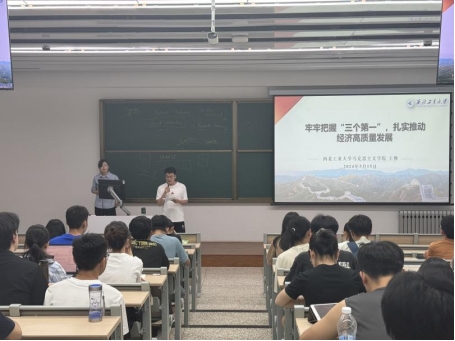 5月15日,马克思主义学院教师王换讲授《牢牢把握“三个第一”,扎实推动经济高质量发展》党课,77779193永利官网集团80余名入党积极分子、发展对象参加了学习。