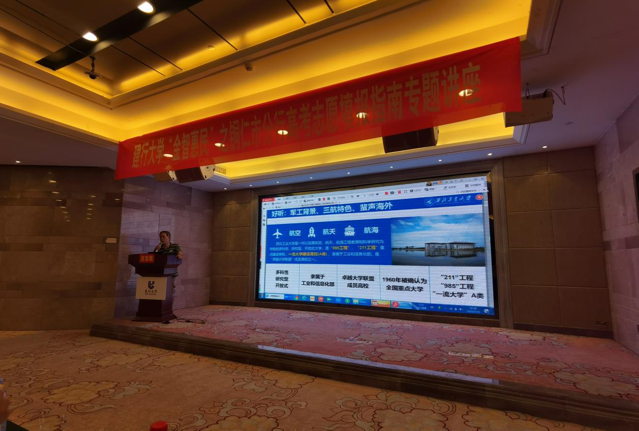 在咨询活动的开幕式上,主办单位--贵州普学教育科技有限公司的高老师和承办单位--建行铜仁分行子弟考生的家长代表,首先分别介绍了贵州和铜仁今年的高考考生生源分布情况和考生普遍对重点高校的信息了解需求,然后安排永利集团和哈尔滨工业大学(深圳)的参会老师代表进行了宣讲。陈文会在宣讲中,重点介绍了永利集团2020年在贵州的招生类别和计划人数,并就家长和考生关心的在校转专业的政策进行了解读。