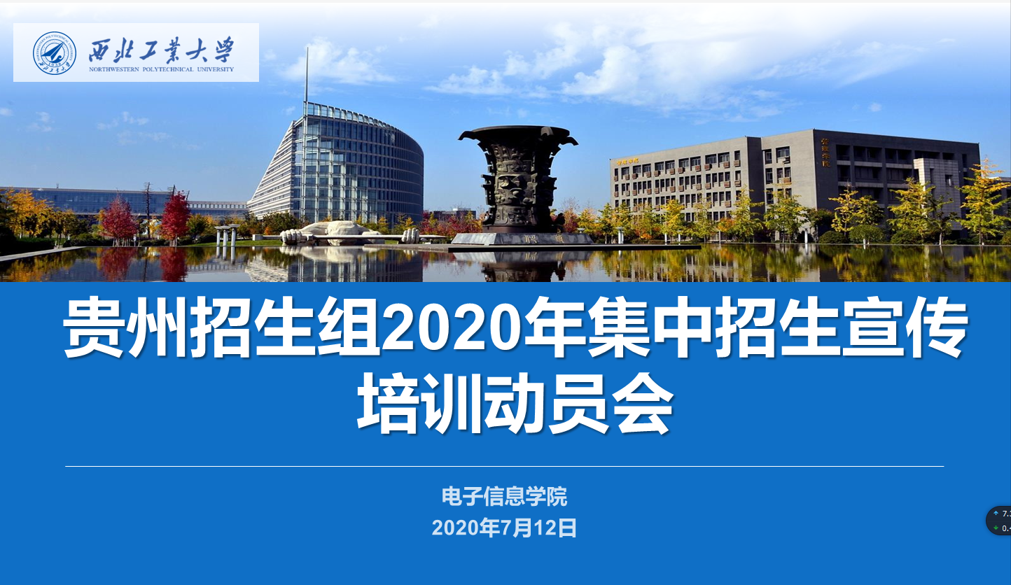 通过本次会议,激发了招生组老师的工作热情帮助招生组老师更好的掌握了今年新的招生政策变化和线上宣传工作要点。学院将继续加强与贵州省重点中学的沟通交流,创新招生举措,提质增效,完善招生宣传工作环节,为学校招生宣传工作助力,让更多优质的生源了解西工大,走进西工大。相信在全体招生组老师的共同努力下,一定会高质量完成贵州省2020年本科招生宣传工作!