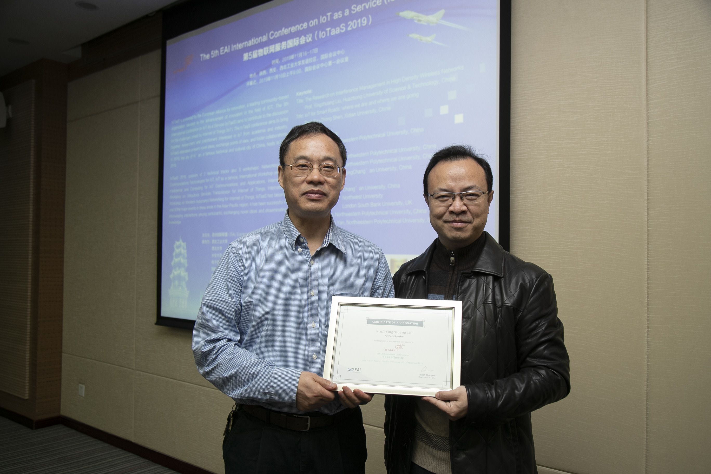 大会主席李波教授首先介绍了本届IoTaaS 2019的筹办情况。本届IoTaaS 2019共计邀请了两位大会报告人(Keynote Speaker),刘应状(Yingzhuang Liu)教授、沈八中(Ba-Zhong Shen)教授;共计有9个会议专题、3个研讨会,接下来的2天里这些安排将在2个分会场依次并行展开。他还向支持并赞助本次会议的欧洲创新联盟(EAI)、永利集团、西北大学、长安大学、77779193永利官网集团无线网络与通信实验室、科技部国际科技合作基地、空天电子信息感知与光电控制教育部重点实验室、信息获取与处理陕西省重点实验室、Springer等赞助单位表示衷心感谢。