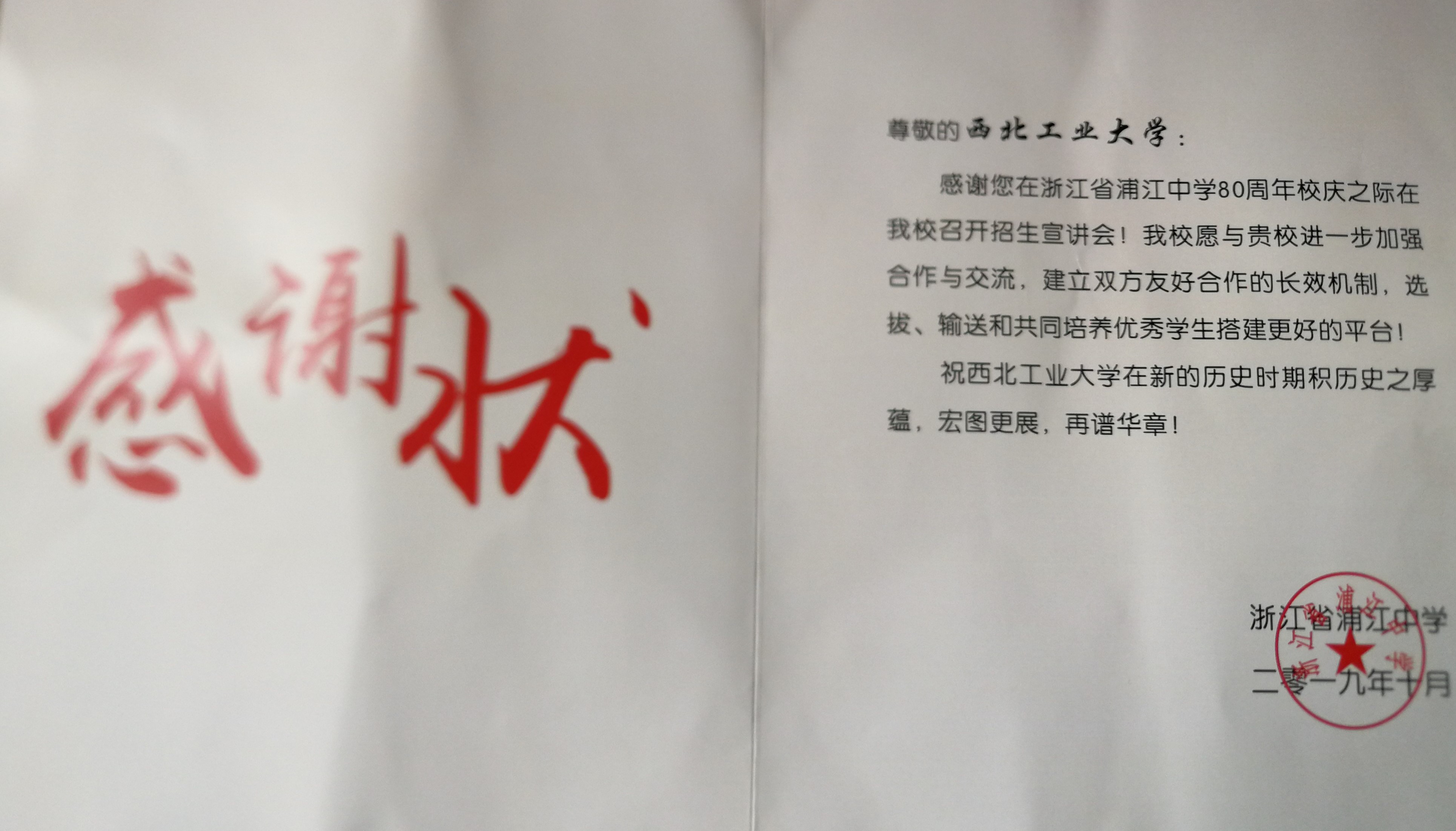 2019年10月6日上午,浦江中学迎来“八十正青春,一九看风华”建校八十周年纪念活动。庆典大会在学校主运动场举行,两院院士以及一批知名专家学者在内的海内外5千多名校友和在校师生们齐聚一堂,共同见证母校这一历史性时刻。浦江中学校长陈建浦致欢迎辞,欢迎各界人士参加学校80年庆典活动。我校发去了贺信,表达了我校对浦江中学80周年华诞的热烈祝贺和诚挚祝福,并派浙江招生宣传组成员冯琦老师代表学校参加庆典活动。