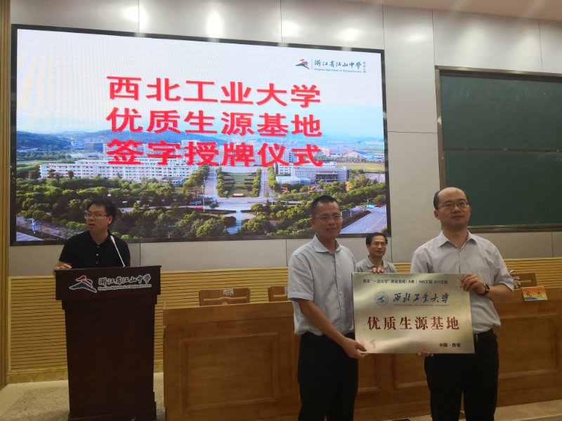授牌仪式上,夏飞华校长对我校一行老师的到来表示热烈的欢迎,并特意向到会师生及家长提到西工大的发展历史,他说江山中学和西工大去年同时迎来80周年校庆也是两校的缘分。李春林书记向永嘉中学多年来为我校输送优质生源表示感谢,西工大将以优质生源基地为平台,积极支持江山中学的教育改革,拓宽双方合作渠道,推进双方更深入广泛的合作,争取有更多优秀江中学子考入西工大。