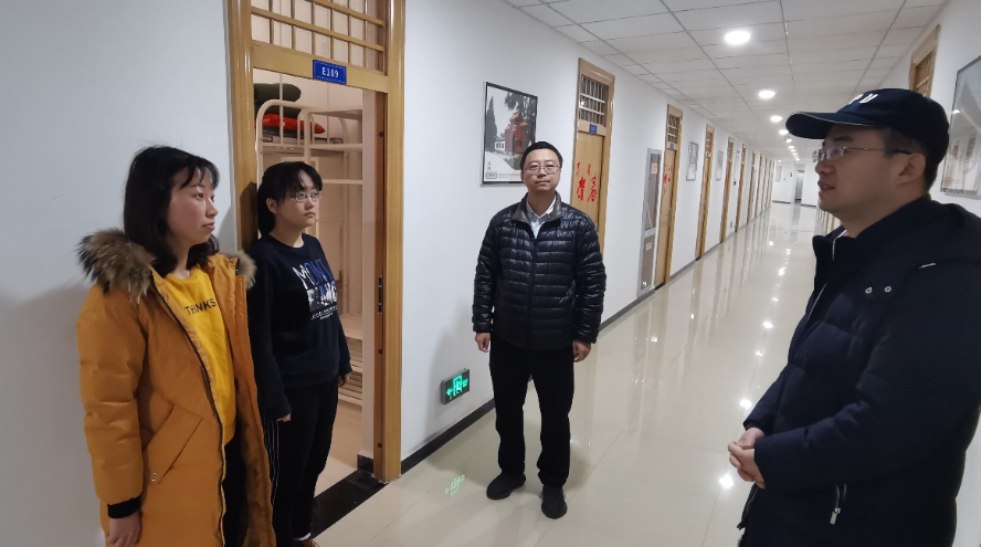 在学生宿舍,院领导与学生亲切交谈,认真查看了学生的住宿环境,仔细了解宿舍供暖及宿舍安全情况。李春林挨个询问了留校学生家乡的疫情情况,叮嘱大家在校期间时刻注意科学防控疫情,要特别注意身体健康,加强身体锻炼,尽量减少外出活动。彭亮强调要严格遵守疫情防控各项规章制度,认真履行外出审批手续,提醒学生注意宿舍用电安全及个人卫生,互相关心关爱,随时与家人、导师、辅导员保持密切的联系,遇到任何问题可以及时向导师、辅导员及学院负责人反映情况,学院将及时解决落实。