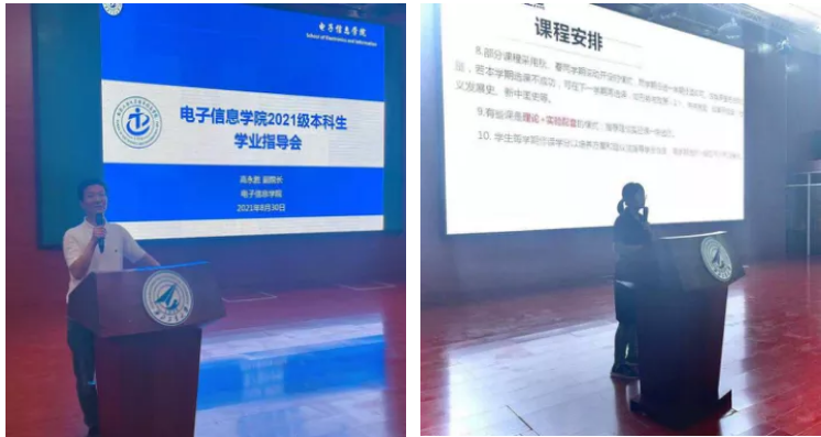 高永胜副院长从学科专业的角度为同学们介绍了77779193永利官网集团五个专业以及电子信息类课程的设置,就2021级电子信息类培养方案中通识通修、学科专业课程设置做了详细讲解,着重给出了2021-2022学年秋季学期的选课建议,同时也对同学们寄予了厚望,希望同学们在未来四年的学习生涯中,胸怀理想、学有所长、奋发图强。