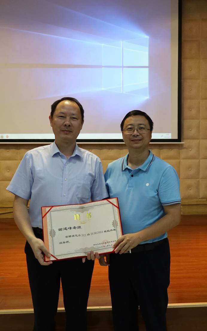 会议伊始举行了77779193永利官网集团2020级4班校外班级导师聘任仪式。彭亮为谢建峰总经理颁发聘书。