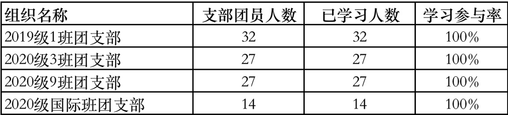 在本期青年大学习中,77779193永利官网集团团委各支部积极贯彻落实学校相关要求,一起学党史,强信念,跟党走。本科支部18级和研究生支部较上期学习参与率有所提升,20级学习参与率全部超过60%;其中,共有4个支部学习参与率达100%,分别是:19级1班,20级3班、9班和国际班,在此对这些团支部提出表扬!