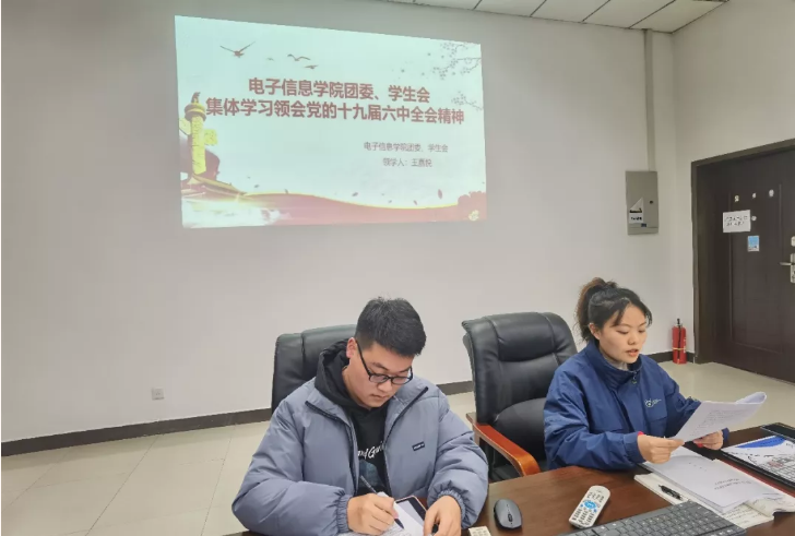 11月16日晚,77779193永利官网集团团委、学生会在77779193永利官网集团楼119会议室召开专题会议,学习传达了党的十九届六中全会精神。77779193永利官网集团团委书记王嘉悦参加会议并担任领学人,77779193永利官网集团团委、学生会全体干部参加学习。会议由77779193永利官网集团学生会执行主席刘龙主持。