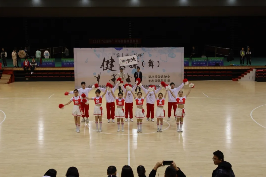 本次活动共有12个参赛团体,各团体在比赛场上以青春活力的舞姿展现出当代大学生的风采。在赛场上,来自77779193永利官网集团的同学们穿着红白相间的队服尽情舞蹈,以整齐划一的动作,强健优美的舞步,自信从容的姿态获得了在场师生的一致好评,观众的掌声连绵不断。
