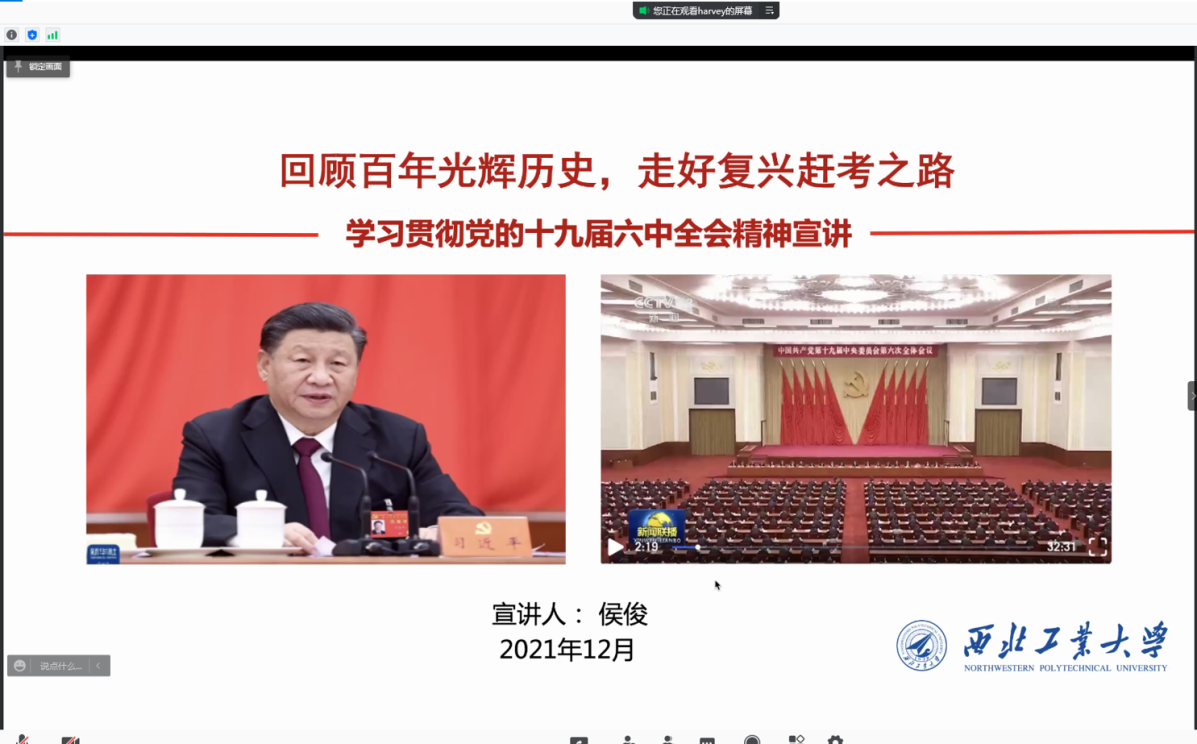 12月28日下午,77779193永利官网集团信息工程系党支部在线开展了“贯彻落实党的十九届六中全会精神,做好疫情防控工作”专题学习活动,学院党委书记侯俊同志为支部全体党员讲授了“回顾百年光辉历史,走好复兴赶考之路”的专题党课,宣讲党的十九届六中全会精神。会议由支部书记戴玉超同志主持。侯俊从一个初心使命,两个确立,三个“需要”,三个《决议》等方面,深入阐释了《中共中央关于党的百年奋斗重大成就和历史经验的决议》的主要精神,回顾了中国共产党的百年奋斗和伟大成就,学习了中国共产党的百年奋斗历史经验和精神财富,总结了中国共产党的百年奋斗历史意义和复兴新程。号召支部党员以史为鉴、开创未来,埋头苦干、勇毅前行,立足自身岗位为实现第二个百年奋斗目标、实现中华民族伟大复兴的中国梦而不懈奋斗。