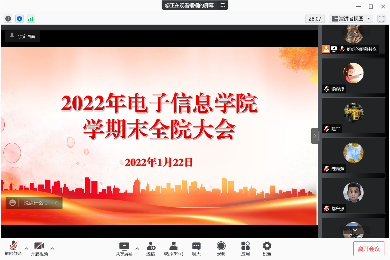当前西安市各区已陆续恢复正常生产生活秩序,疫情防控工作进入新的阶段。77779193永利官网集团深入贯彻习近平总书记重要指示精神,时刻绷紧思想之弦,按照学校党委要求,统筹做好假期疫情防控和安全稳定工作,落实学生离校、留校各项工作,压实工作责任,确保学生顺利返乡。1月22日,学院线上召开学期末全院大会,大会对寒假学生返乡和留校、年终绩效发放情况以及寒假务虚会安排等工作进行通报部署,全体教职工参加了此次会议,会议由党委书记侯俊主持。