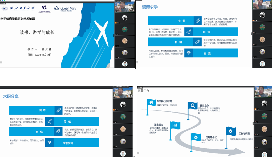 徐瑞以时间轴为顺序,分别讲述了在永利集团攻读博士期间以及在英国肯特大学和新加坡南洋理工大学做海外博士后期间的科研、生活、学习及成长经历,并结合自己的求学、求职的相关经验和心路历程,向大家分享了自己在职业发展等方面的经验,给了同学们很多科研和职业规划上的建议,与会同学们受益良多。