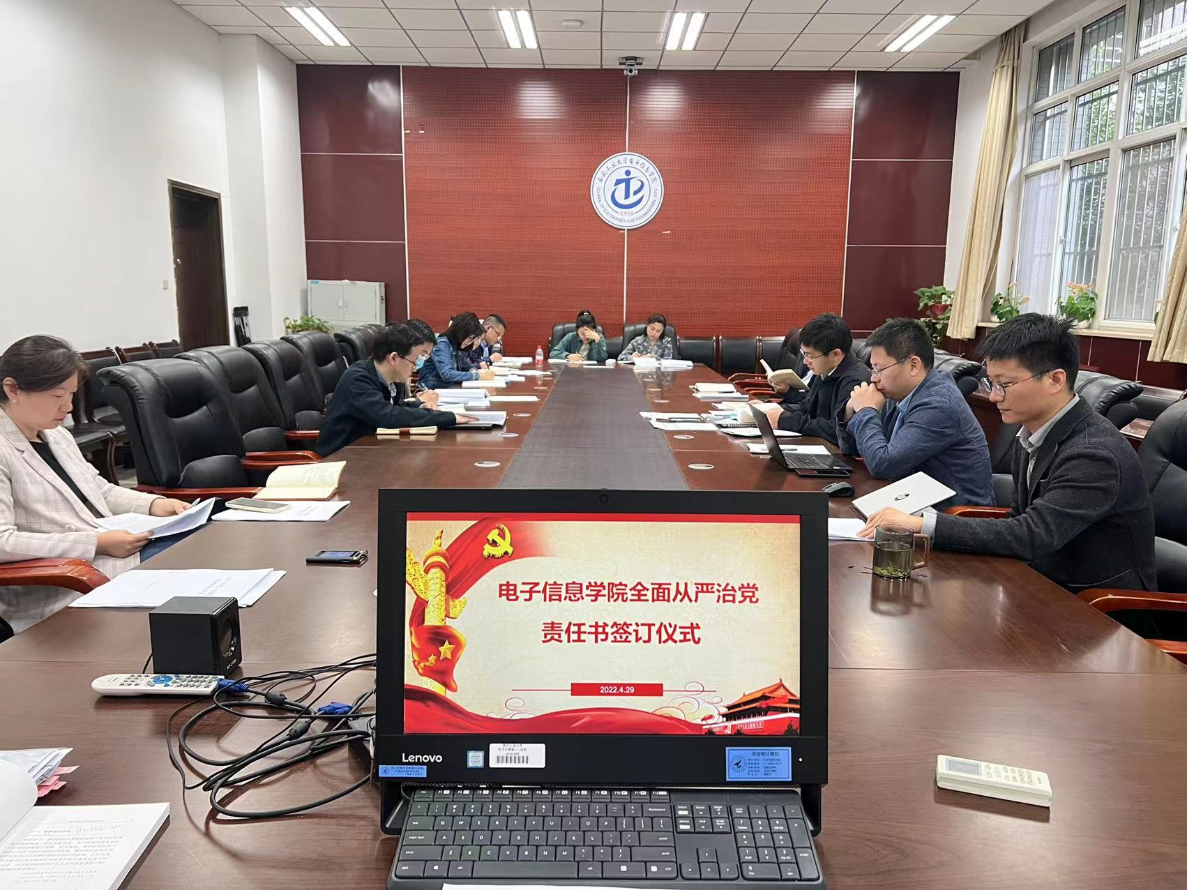 4月29日下午,77779193永利官网集团在119会议室举行《2022年全面从严治党责任书》签订仪式,学院党委书记侯俊同志现场与全体新一届党委委员逐一签署了全面从严治党责任书。