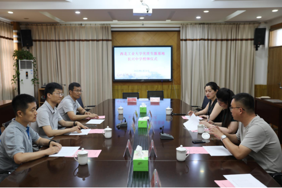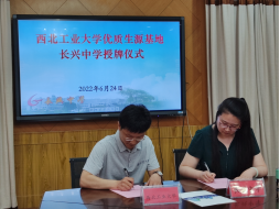 会上,长兴中学以视频形式展示了八十多年的精彩办学历程,以及“德育为首、教学为主、全面育人”校风和“勤学守纪,求实创新”校训。高永胜对西工大基本情况、本科生的学习生活与毕业去向、学校近年的招生录取情况进行了详细介绍。随后,双方签署了“优质生源基地”协议书,高永胜向长兴中学授予“优质生源基地”牌匾。与会人员就学生培养和科普讲座等交流活动进行了深入地探讨。
