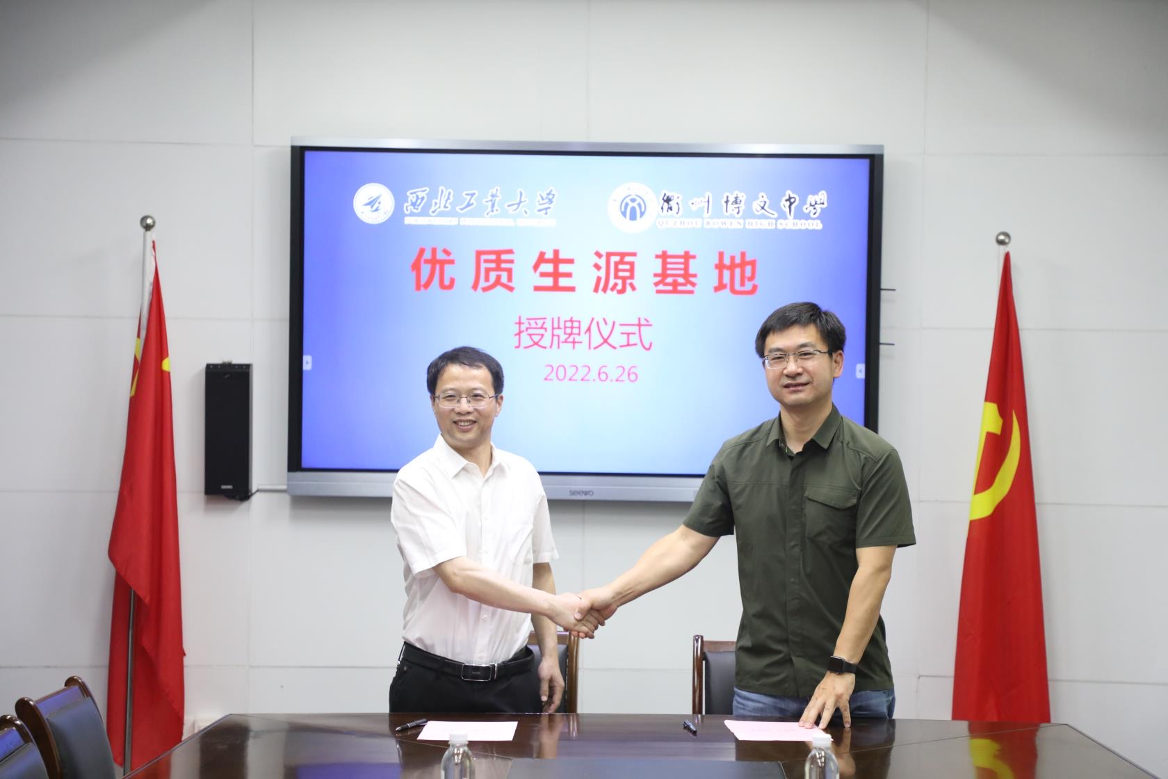 侯俊书记介绍了永利集团的学科分布、鲜明的三航特色、为国育才的办学宗旨、“三实一新”的校风含义、“公诚勇毅”的校训传承。侯书记特别指出,歼-20、运-20 、直-20的型号总师均是西北工业大学毕业生,“西工大现象”在行业内有口皆碑。他用形象语言和生动实例介绍了西工大的教学科研成果,列举了包括余承东、吴亚军等在内的工业和商业领域杰出校友的事迹和成就。他真诚祝愿两个中学越办越好,不断地为永利集团输送优秀生源,共同培养未来卓越优秀人才。