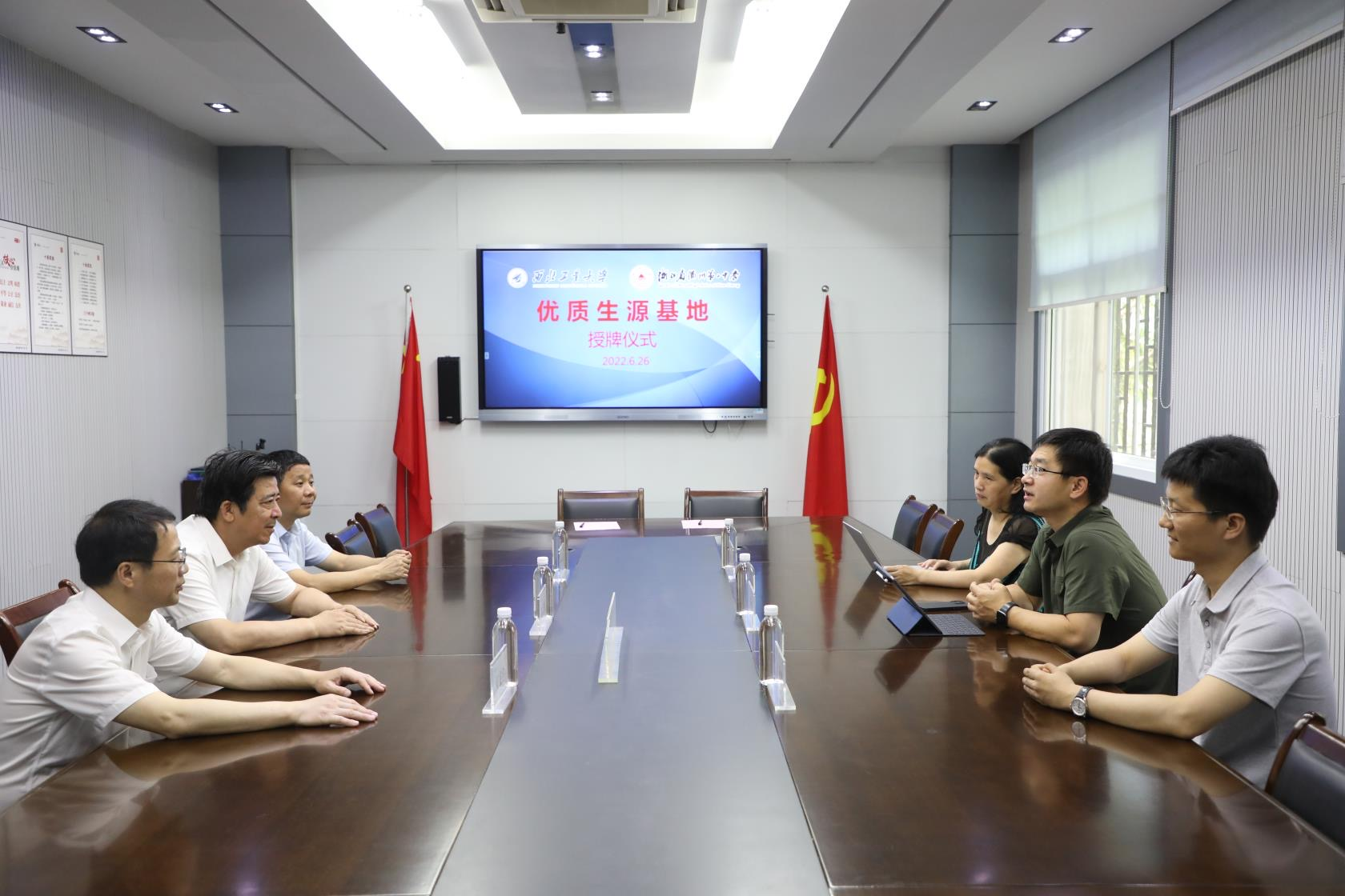 2022年6月26日上午,永利集团“优质生源基地”授牌活动在衢州第二中学行政楼二楼会议室举行。衢州二中党委书记潘志强、校长翁胜华、副校长及博文中学校长祝凌宇,77779193永利官网集团党委书记侯俊、浙江省招生宣传组组长高永胜、衢州地区招生宣传负责人谢红梅参加会议,会议由祝凌宇主持。