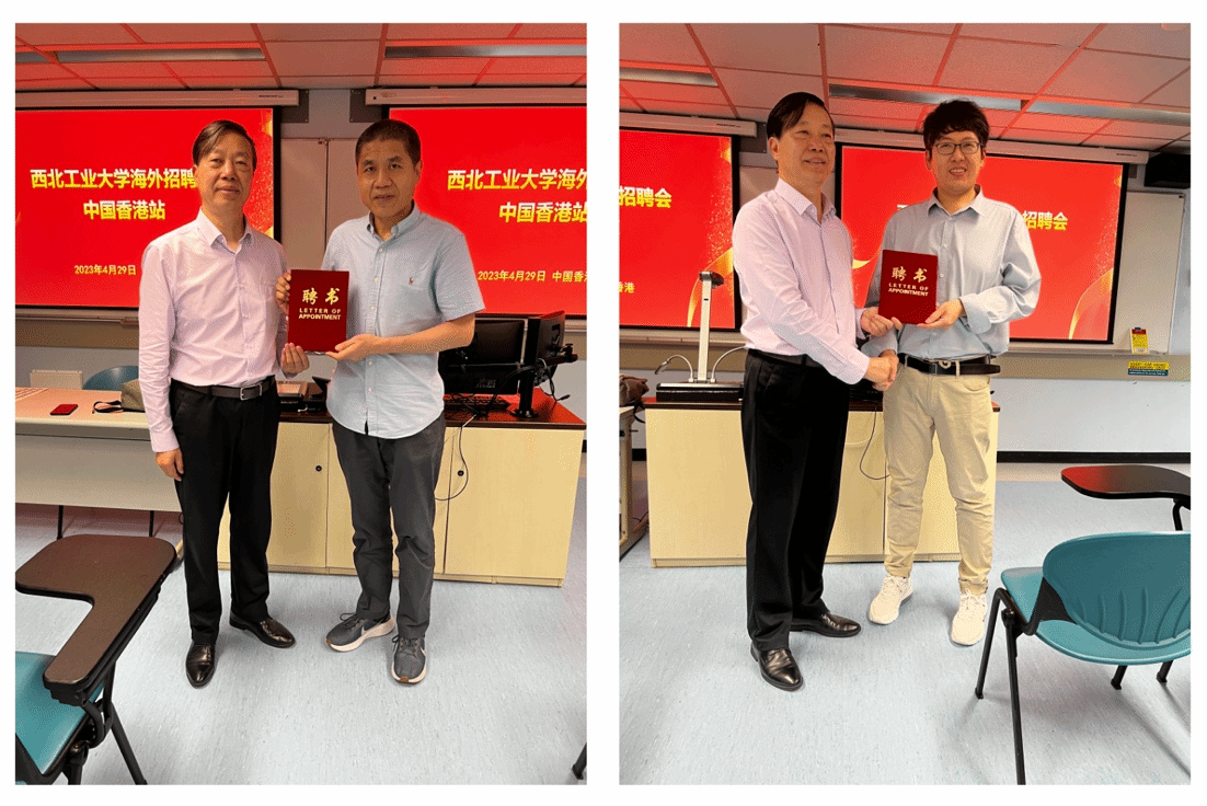 活动最后,何明一教授做总结发言,再次欢迎大家加盟西工大,一起为报效祖国、公为天下贡献各位学者的力量。我院客座教授、IEEE Fellow、香港城市大学张青富教授,优秀院友、香港城市大学侯军辉副教授为学院的引才做出了突出的贡献,何明一教授代表院长王伶为他们颁发了77779193永利官网集团引才大使聘书。
