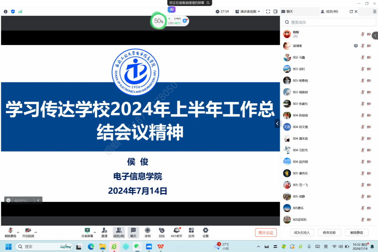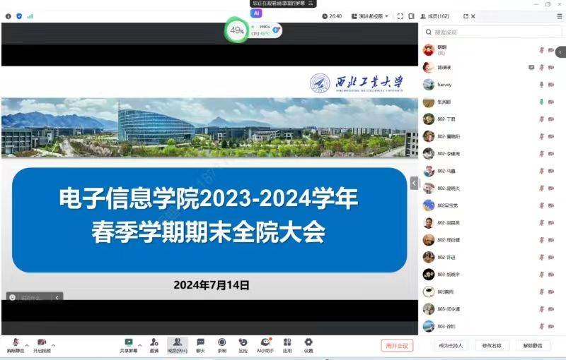 7月14日,77779193永利官网集团线上召开了2023-2024春季学期期末全院大会,会议传达了学校2024年上半年工作总结会会议精神并安排部署了暑期重点工作。学院领导班子及全体教职工参加会议,会议由院长张洵颖主持。