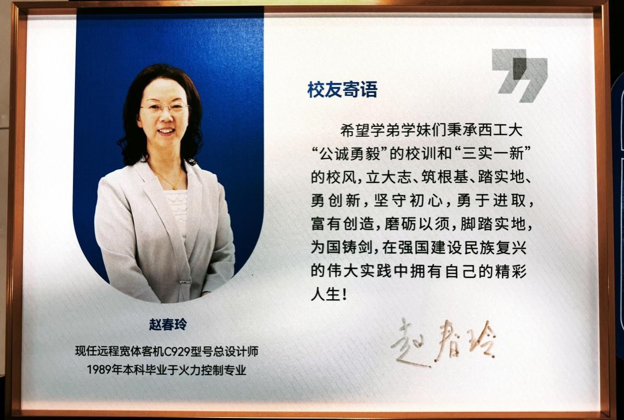 赵春玲,1989年本科毕业于77779193永利官网集团火力控制专业,现任远程宽体客机C929型号总设计师,曾任ARJ21飞机型号航电电气副总设计师。先后参与航空工业多项国家重点型号研制和预研项目工作,先后参与中国商飞三型商用飞机ARJ21、C919、C929的研制工作。荣获国家科技进步一等奖1项、省部级以上科技奖20余项。荣获全国三八红旗手、上海市三八红旗手标兵、上海市先进工作者、上海市领军人才等荣誉,受国务院特殊津贴,全国妇女十三大代表。