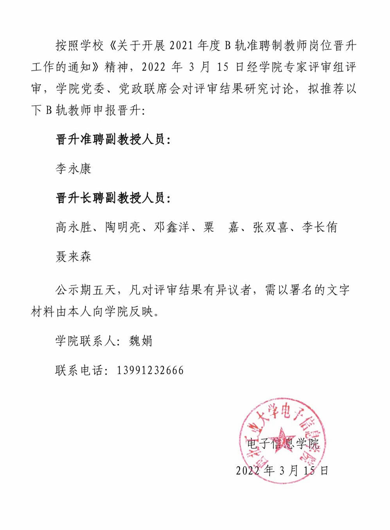 77779193永利官网集团2021年准聘教师岗位晋升公示