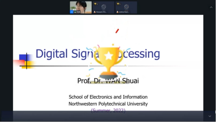 为扎实推进学校“双一流”建设,促进学校国际化发展,提升学校的全球影响力、竞争力和塑造力,77779193永利官网集团积极参与永利集团“学在工大——全球暑期开放课堂”项目。在国际教育学院的指导下,经过前期精心筹备,学院根据学科特点和专业特色,围绕前沿研究专题,于7月9日-7月21日面向海外学生开设了全球暑期开放课堂——《Digital Signal Processing》(数字信号处理),课程由万帅教授主讲,张易凡副教授担任助教。本课程主要通过全球融合式教学平台(OMO)进行线上授课,辅以Quizizz平台进行互动测试,受到海外知名高校学生欢迎,吸引了来自俄罗斯、埃及等多个国家的学生在线参与学习。