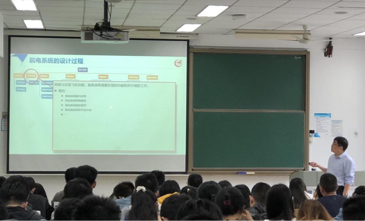 5月10日上午,在77779193永利官网集团专业基础课《综合航空电子系统》课堂,校外专家陆屹受邀登上讲台,为师生讲授“航电系统的研制过程”课程内容。110多名学生共同聆听了这次精彩纷呈的课程。副部长刘志男、77779193永利官网集团副院长高永胜、《综合航空电子系统》课程主讲教师吴勇、张建东以及803系张耀中、徐钊老师参加了本次授课活动。