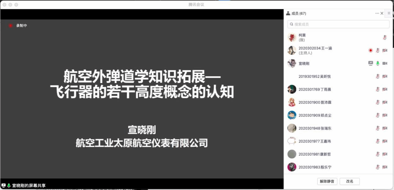 宣晓刚结合自身工作经历,从飞行器的工程实践与应用出发,对气压高度、真实高度等几种常用高度及它们之间的关系、飞行器总静压系统的校准、目前国内外常用标准等知识进行了生动而详尽的介绍。他鼓励同学们努力学习、不断进步,未来在关键科学技术上有所突破;同时注重培养优秀的个人品质和素养,力争为我国的科学技术发展做出贡献。