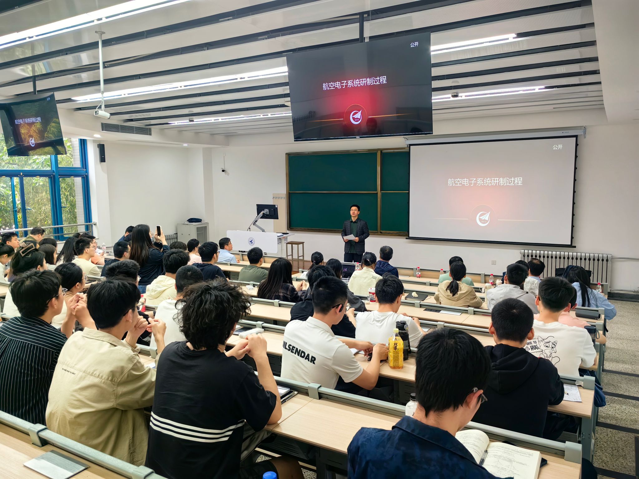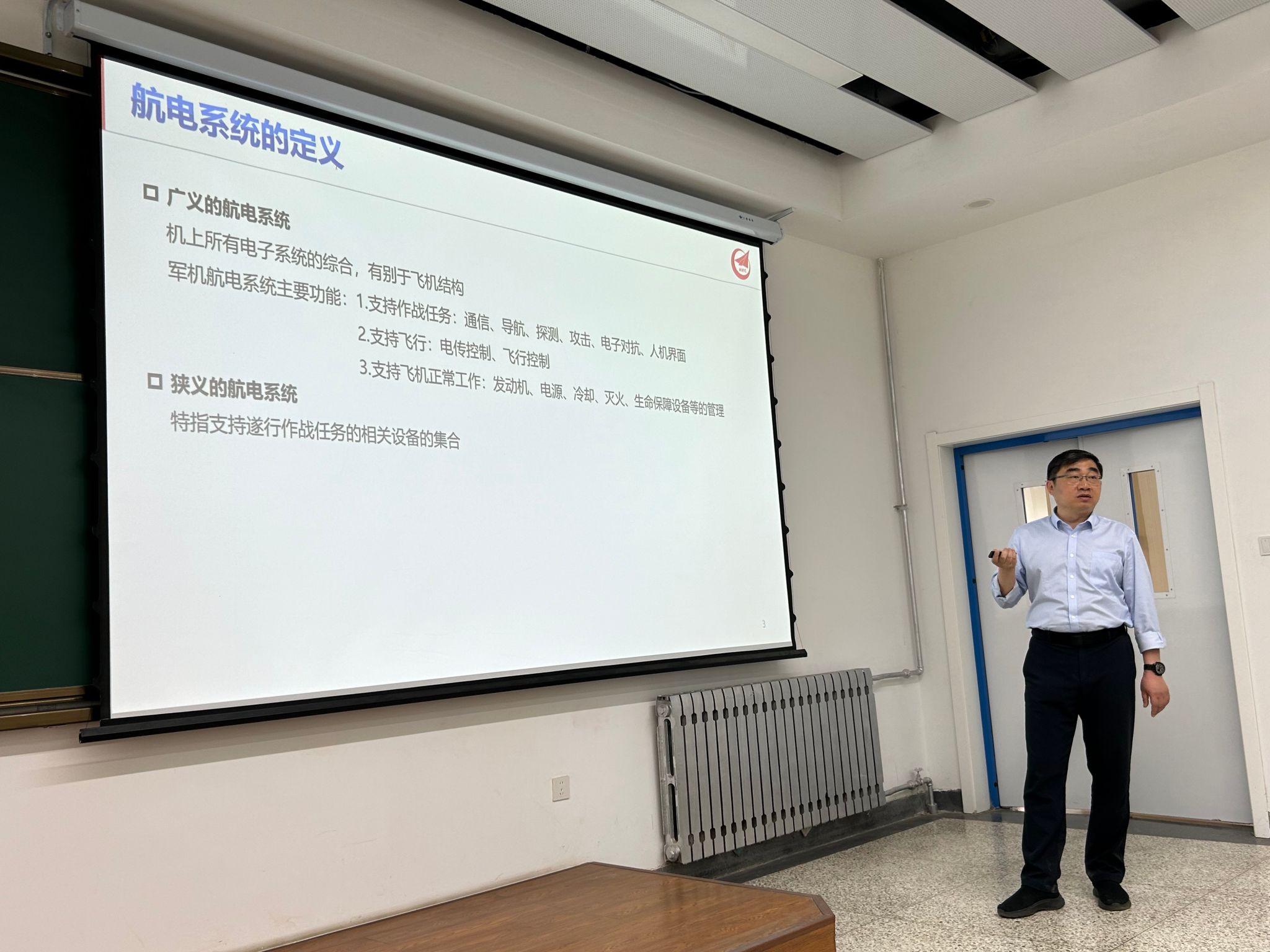 课程主要围绕“综合航空电子系统”展开,讲授内容包含综合航电系统的设计、座舱显示与控制技术、悬挂物管理系统设计、综合航空电子系统飞行试验等模块,四位专家总师结合自身数十载一线研发经验,为本科生带来理论与实践深度融合的“硬核课堂”。总师在课堂中勉励同学们认真体会复杂装备研制中的系统思维,掌握航电系统设计的核心内涵,提升专业能力。