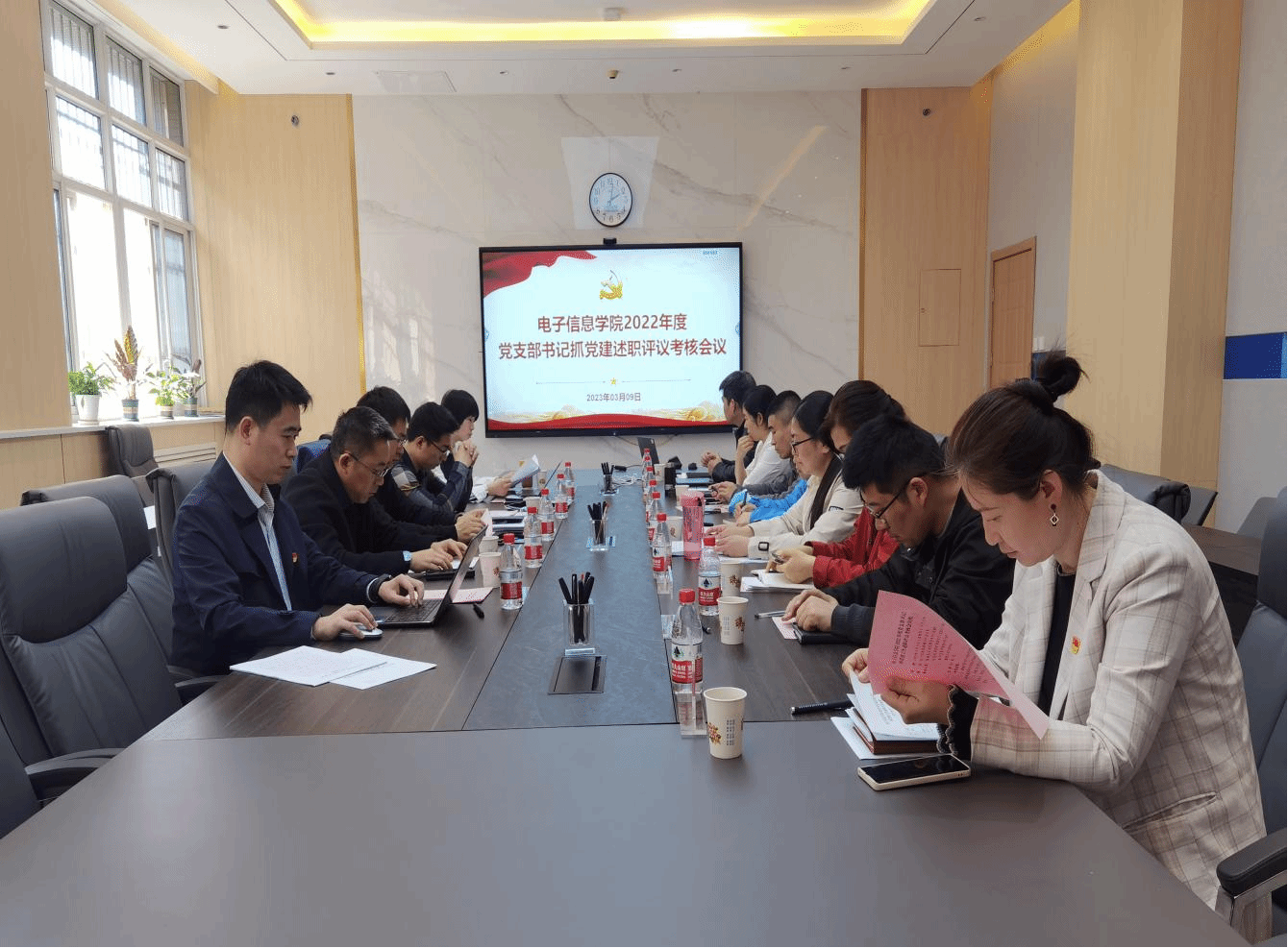 首先,高敏对学院2022年度党支部书记抓党建述职评议考核的述职内容和评分标准进行了说明。随后,李立欣、李桂芳、朱海亮、马云红、王毅、包涛、夏召强、郭琳8位教工党支部书记(支委),重点围绕深入学习贯彻习近平新时代中国特色社会主义思想和党的二十大精神、落实基层党建工作重点任务、强化党支部政治功能、做好师生思想政治教育、落实全面从严治党要求、工作中存在的问题和不足以及下一步工作的考虑和计划七个方面依次展开现场述职,用具体的数据、生动的事例、形象的表述,真实、客观的展示了党支部一年来的工作、取得的成绩和存在的问题,并提出了下一年的工作思路和举措。述职过程中,评委依次对述职情况进行了点评和打分。
